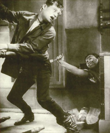 back, sticking a fork into the backside of one of the other characters!