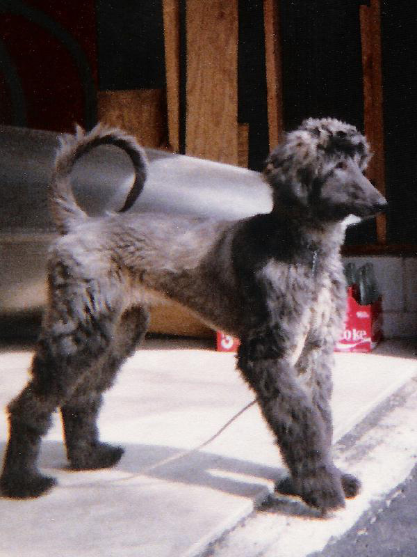 Our friends Art and Cherie bred, raised, and showed Afghans. We'd often go out to their place in the country outside of Cortland, Ohio where, on their seven acres, they always had three or four beautiful dogs which we often found running free inside a large fenced in exercise yard, with their tails held high bouncing in their wake and their long hair flowing gracefully along side their sleek, well-muscled bodies. I had worked with Art for several years, and we had become good friends, and Mei-O had also become good friends with Cherie. Both Mei-O and I loved visiting Art and Cherie's gorgeous Afghans. Having always been very allergic to dogs, I was quite surprised that the long, loose Afghan hair scattered everywhere around Art and Cherie's house didn't bother me in the slightest. The dogs wandered freely throughout all the rooms (in fact, they lived in the basement), yet I could spend a whole evening there without sneezing and without my eyes getting red and itchy, which is what usually happens when I spend any time in a house where cats or dogs live. Mei-O and I often thought we might want an Afghan of our own, but, though we owned our own house in the city, we felt our yard was too small for a big dog that needed plenty of room to romp and play. So we'd visit Art and Cherie and enjoy their dogs instead. One day, Art and Cherie asked us if we'd mind watching their house and caring for their Afghans while they went on vacation for a few weeks. Cindy, a striking blond, almost white Afghan, had recently delivered a litter of seven or eight pups, and they would need a lot of care. We happily agreed, and, according to Art's instructions, went to see the dogs at least once daily to feed, water, clean, and exercise them. The new puppies were especially fun. They were kept in a separate pen in the basement, and got so excited whenever Mei-O would open the pen's gate and approach them, jumping and yapping, their tails wagging, a true sign of happy pups. One pup in particular took a liking to Mei-O - a small, grayish-blue colored male. He wouldn't leave her alone and kept following her around and nipping at her feet as she walked around the pen cleaning up. Mei-O fell in love with the little guy, and we decided, despite our city-sized back yard, as soon as Art and Cherie got back, we would buy him. And that's how our second Blue, this one an AKC registered Afghan, came to join our family and live in our house in Warren, Ohio. I'm not sure how long we had Blue, but his hair got pretty long and he sure became a lot of work. Bathing and grooming him took hours, and his long hair tangled and matted easily and required a lot of maintenance. (The picture above was taken when he was still a puppy, before his hair got really long.) I loved walking him around the neighborhood no matter what the weather - it was good for both of us - but sadly, he had no place of his own to run. We'd take him up to Art and Cherie's occasionally to see his mom and others of 'his own kind', but he just didn't get the kind of exercise he needed in our city home. Several times he got free and escaped from our house, running all over the neighborhood, scaring the daylights out of us as he'd blindly dart out into the street. Once, he got a big bloody scratch on his nose from a piece of barbed-wire fence hidden in the brush in the forest behind our house. We'd chase him for hours, often enlisting the aid of neighbors to corner him, bring him down, and get a leash on him, then finally taking him home. I especially remember one time when Mei-O made a beautiful flying tackle in the deep snow to catch him. We knew he needed more freedom, and felt we just couldn't provide it for him. So, between the high maintenance (I guess we just aren't good dog people) and the lack of open space for Blue to romp around in, we decided it was time, as painful as it would be, to look for a better home for Blue. Mei-O had an acquaintance who lived out in the country with a very large open yard where Blue could run free. He worked with Mei-O, and she felt he and his family would be able to provide a good home for Blue. So, after days of agonizing thought, one day we handed Blue over to his new owner. Immediately he was sadly missed. A lot. But that's not the end of the story of our second Blue. It gets even worse. Just a few days after we gave Blue up, while driving down a major street in Warren on a rainy day, we spotted a dead dog lying at the side of the road. It was wet and dark gray in color, but looked much smaller than our Blue, and with the sky so dark and the rain coming down and the just quick glimpse we had of it, we thought nothing of it. Then that night, Mei-O had a dream - a nightmare. She dreamed that Blue was calling to her to please come and get him, to bring him home to us, that he wasn't happy where he was - and she woke up crying. Though it was just a dream, it was really sad and scary. Suddenly, we just had to find out if that was Blue we saw the day before, but when we went back the next day to check, there was nothing there. But we just had to know. So I called the city street maintenance department and asked them if they picked up a dead gray-colored dog off the street where we spotted him. They said yes, a gray afghan with a red collar. My heart sank; I knew it was our Blue. As it turned out, Blue's new owner brought Blue to the city one day to a friend's house