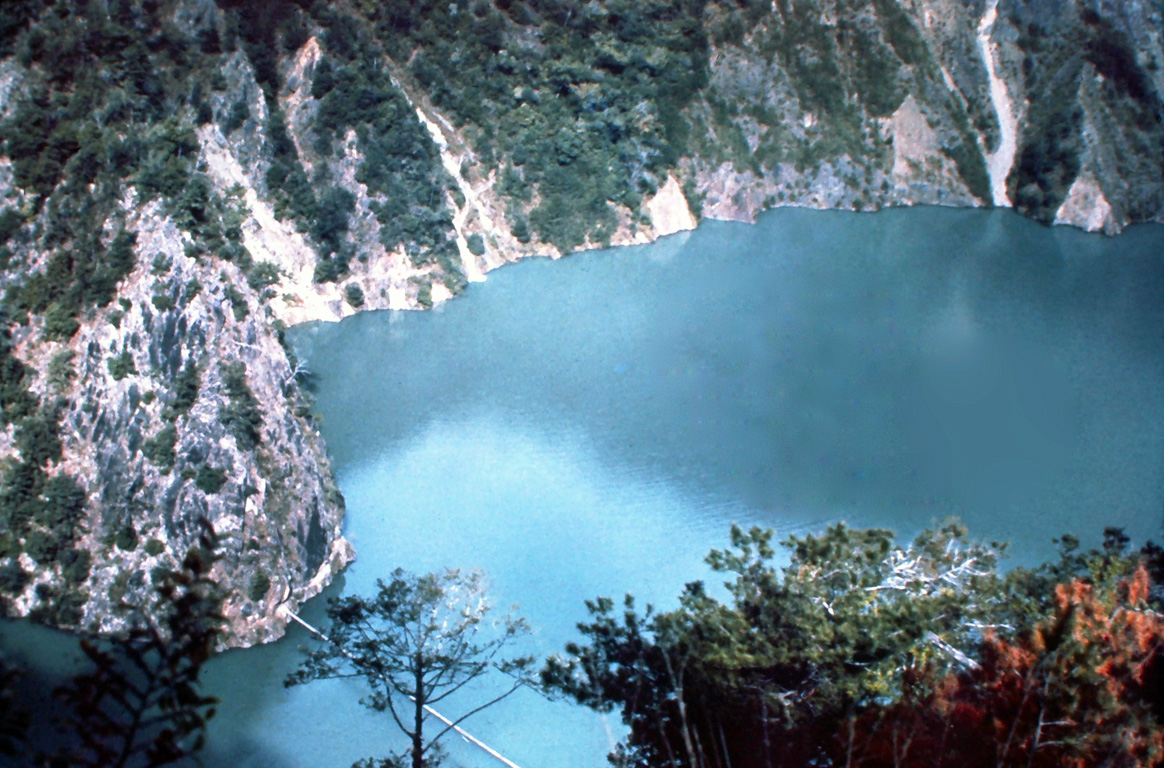While visiting Taiwan in July of 1984, one day I decided to take Chris on a motorcycle ride up to the Fengyuan Golf Course which was up in the mountains about 10 miles or so northeast of Taichung where we were staying with Mei-O's family. When I was in the Air Force stationed in Taiwan, I often drove up there on my Honda 125 where the view was just spectacular. Standing at the edge of the golf course's parking lot looking west, a vast, rocky dried-up river bed flowed as far as the eye could see to the ocean. A patchwork quilt of farms and rice paddies filled the space south of the river bed towards Taichung. And headed east from the golf course, a dead end road led to a vantage point overlooking a deep valley between this mountain range and the next, where I often sat quietly listening to the dogs and chickens and people sounds seeping up from the small unseen village in the valley way down below me. So with about five dollars in my pocket, Chris and I headed off on my brother-in-law's motorcycle for the short ride towards Fengyuan. I don't even remember if we got to the golf course or not, but I do remember passing the northern end of this first mountain range just east of Taichung, traveling through the foothills below the golf course eastbound towards the interior of Taiwan. (Taichung is slightly inland from the west coast of the island.) Before I knew it, I was on the main cross-island highway which I had traveled many times in the past. The highway was rough and narrow, oft times cut right into the sheer rock of the steep mountain cliffs, with many tunnels cut right through the mountains. The trip began to turn into an adventure, and would soon leave us full of memories not easily forgotten. I don't know what kept me going on, but it was a nice day, the sun was shining and we had all the time in the world, so we continued on eastbound towards the center of the island, Chris clinging tightly to me as we bumped along the winding, climbing mountain roads. I wasn't real familiar with my brother-in-law's motorcycle (most motorcycles operate similarly, but there are a few minor differences between different brands and models), and as we entered the first dark tunnel, I couldn't find the headlight switch which, after I got part way into the tunnel away from the light of the entrance, I found I desperately needed. Not being able to see very far in front of me, I stopped the bike and started fiddling around with the various switches on the handlebars, trying to get some light in the tunnel. That's when the engine died! I couldn't get it restarted, so I decided the best thing to do was to turn around and walk back out the way we just came in - against traffic, this being a one way tunnel! The thought of a car entering the tunnel coming at us in the dark remained firmly in my mind until we finally made it out. What a relief when we did get back into the bright sunlight. So, I made sure to familiarize myself with the lights (and everything else), got the bike restarted, and off we went once more into the tunnel, this time making it through and continuing onward and upward. (We were climbing higher and higher into the mountains with each mile we put behind us.) Now the cross-island highway is an extremely beautiful road filled with deep valleys and high cliffs, greenery of all sorts everywhere, clear mountain streams and the occasional lake, and clean, fresh, cool air.