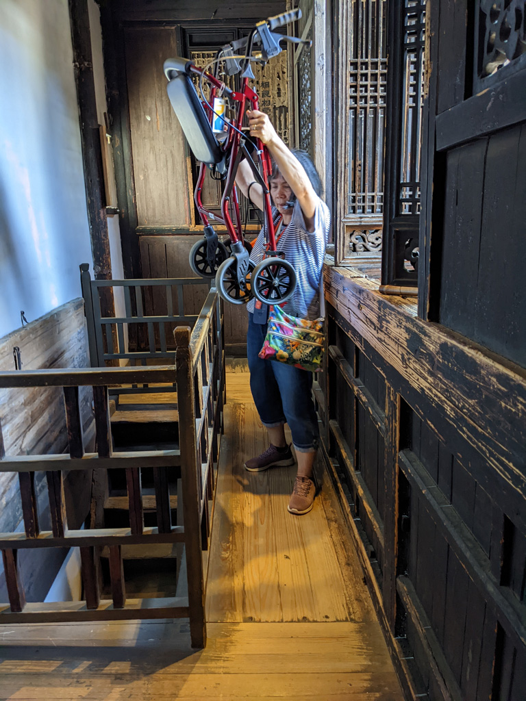 ![]() The hallway was too narrow for my walker to walk through, so we had to fold it up and have Mei-O carry it. |