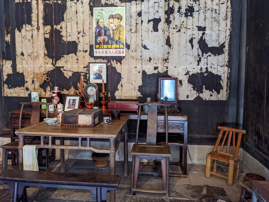 ![]() That's Chairman Mao Zedong's picture on the wall. |
