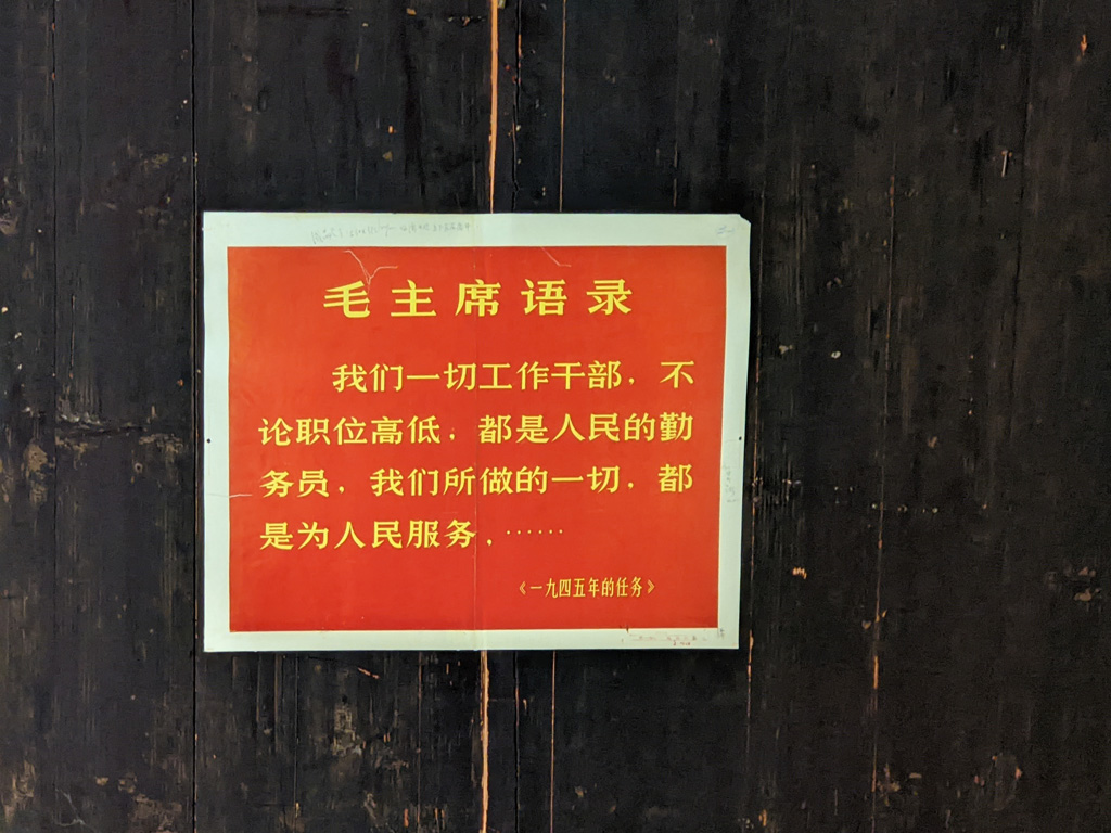 ![]() A quote from Mao Zedong. "All our working cadres, regardless of the level of position, it is the diligence of the people, everything we do is to serve the people, ......" (The Task of 1945) |