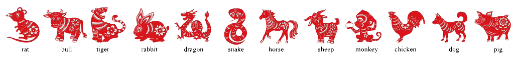 Chinese 'zodiac.' Depending on the year in which you were born, you will 'be' one of these